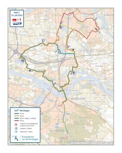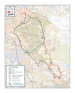 dag 4. Het parcours van de Vierdaagse 2019 is daarnaast beschikbaar in tekst, beschreven per dag en per afstand, van de start tot het eindpunt: