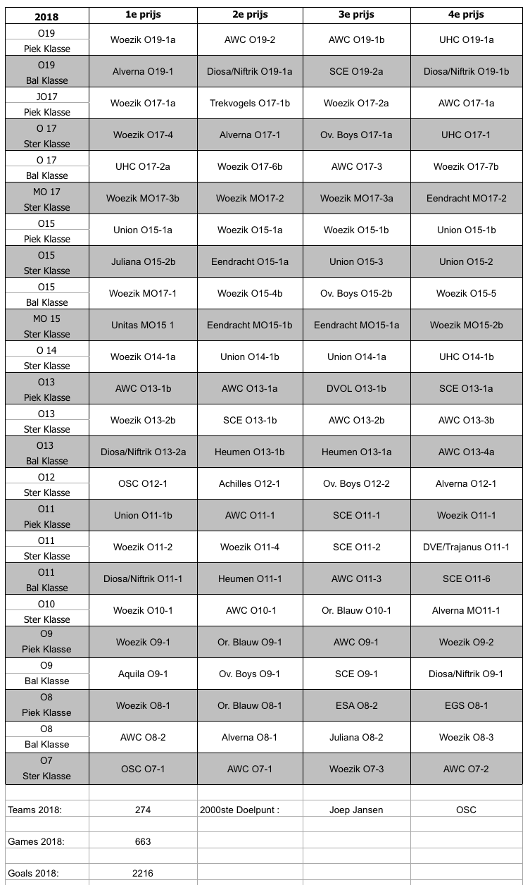 Op de finaledag was de Olympichal weer een kolkende massa en na veel emoties en inspanningen ontvingen de volgende teams een beker: