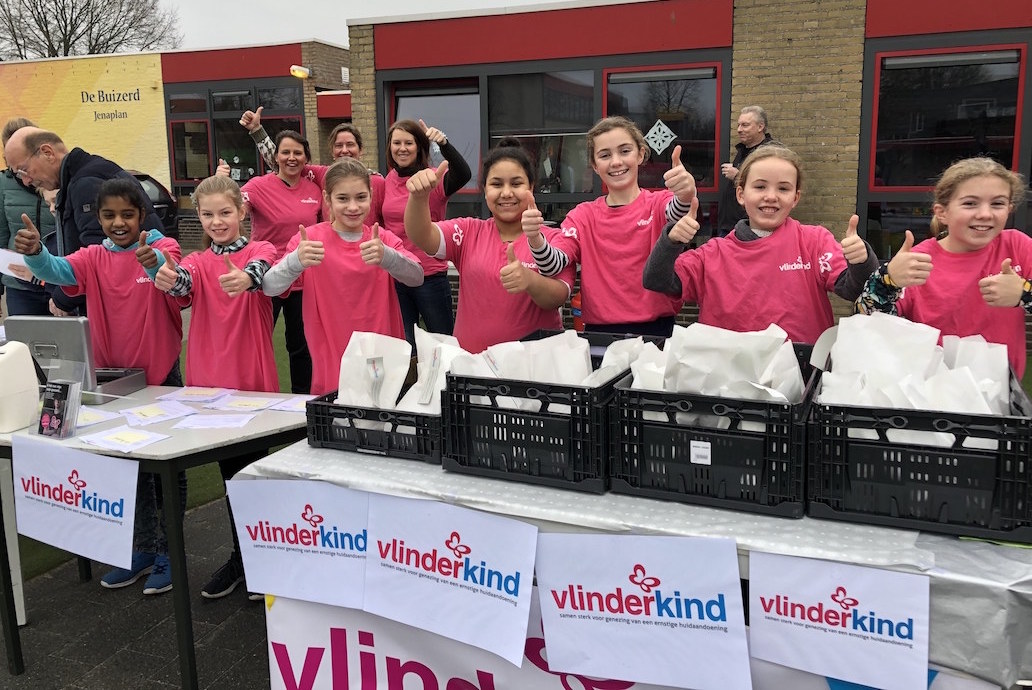 Kinderen van Jenaplanschool de Buizerd verkochten op maandag 31 december voor Stichting Vlinderkind 2500 oliebollen en appelbeignets in roze shirts. Een winters sfeertje, warme chocomel, een vuurtje en een muziekje op de achtergrond zorgden voor een geweldige opbrengst voor dit goede doel: Stichting Vlinderkind. De organisatie bedankt iedereen voor de enorme betrokkenheid!