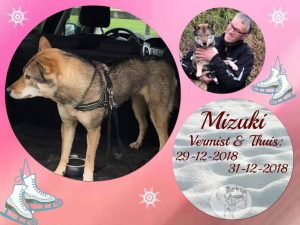 zaterdagavond van een harde knal en rende weg. Dat gebeurde toen haar baasje Klarina de Groot haar aan het uitlaten was in de wijk Kerkeveld. Diverse vrijwilligers zochten op verschillende plekken naar de hond. Mizuki heeft volgens zoekplatform