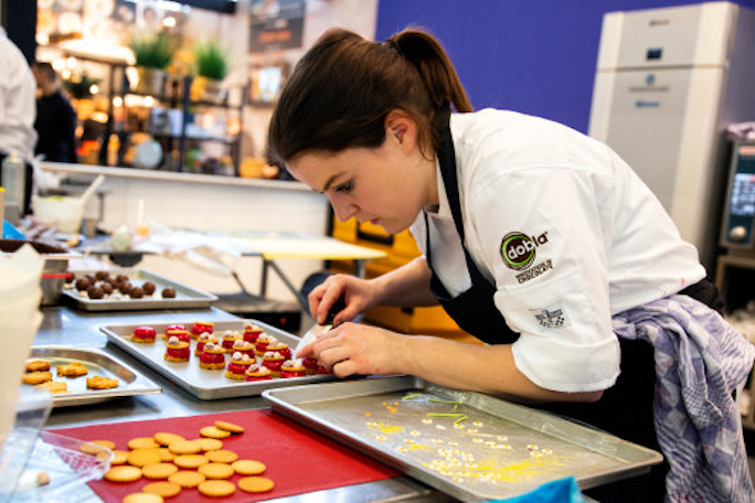 Stephanie van Sonderen (26) uit Wijchen is vandaag samen met Anika van der Veen derde geworden tijdens The Dobla Pastry Battle, die gehouden werd op de Horecava in Amsterdam. Deze wedstrijd met patisserie van het hoogste niveau wordt jaarlijks in binnen- en buitenland georganiseerd door Dobla, wereldwijde speler op het gebied van chocoladedecoraties.