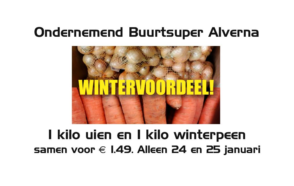 Buurtsuper Alverna aan de Heumenseweg 8 in Alverna/Wijchen (tel. 024-642 5121) heeft een winterse aanbieding! Alleen op 24 en 25 januari geldig, dus wees er snel bij. En morgen verschijnt de folder van Buurtsuper Alverna met nog véél meer aanbiedingen!