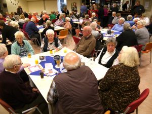 Ondanks het slechte weer met sneeuw was de opkomst goed, zo’n 110 deelnemers trotseerden de kou en gladheid. Voorzitter Frans Nijsen wenste iedereen een heerlijke maaltijd, maar voordat er met de soep werd begonnen was er eerst 1 minuut stilte. De maaltijd was fantastisch en verzorgd door Van Eldijk Horeca & Maaltijden, de deelnemers lieten het zich goed smaken.