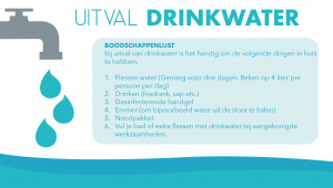 Schoon drinkwater… dat komt gewoon uit de kraan, toch? Maar wat doe je als de drinkwatervoorziening uitvalt? Er kunnen verschillende redenen zijn waarom drinkwater tijdelijk niet beschikbaar is. Denk aan een leidingbreuk of werkzaamheden, waardoor de toevoer van drinkwater tijdelijk is afgesloten. Ook kan er verontreiniging zijn geconstateerd.