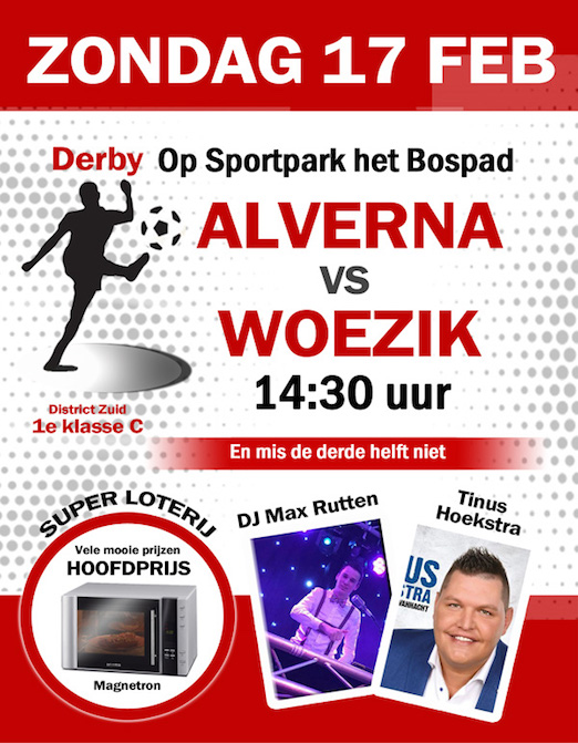 Volgende week zondag: de derby Alverna - Woezik op 't Bospad!