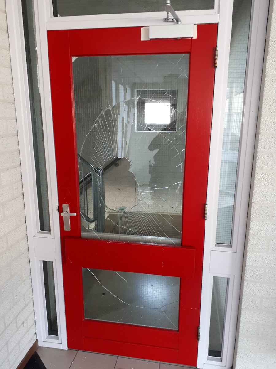 Wijkagent Henry van Galen van politie Wijchen meldt via Twitter: "Vanmorgen hebben we een 33-jarige Wijchenaar aangehouden voor vernieling van een ruit in de gemeenschappelijke ruimte van een appartementencomplex aan de Passedwarsstraat in #Wijchen. Nu op het bureau in Nijmegen bezig met de administratieve afhandeling."