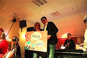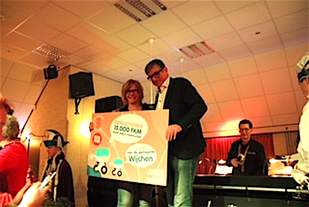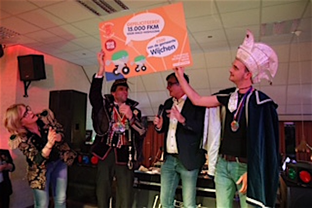 Tijdens de carnavalsdisco op zaterdag 16 februari kwam wethouder Paul Loermans het Hoshuuske verrassen met een mooie cheque van 500 euro. Wijchenaren hebben via de