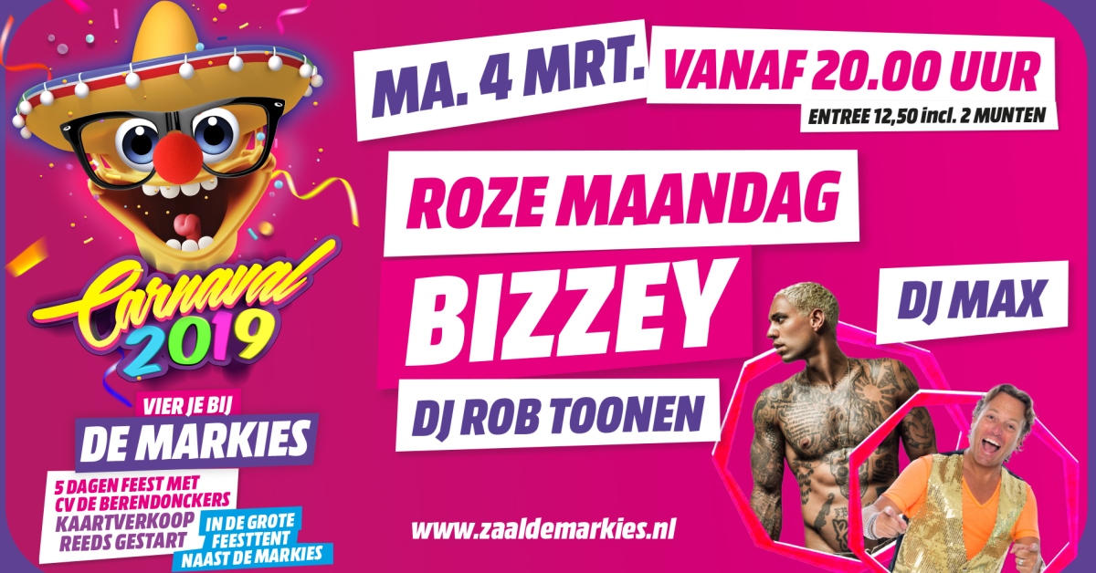Maandag 4 maart: Carnaval vier je bij De Markies – Roze Maandag!