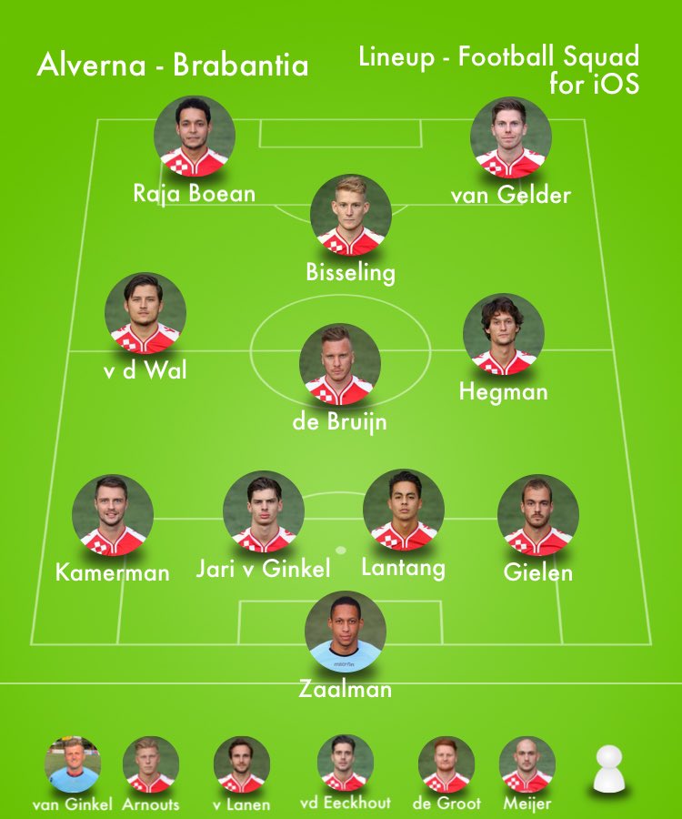 Robert Zaalman: Job Gielen, Jari van Ginkel, Mels Lantang, Tjalling Kamerman: Mats Hegman, Derek de Bruijn(’57 Danny Meijer), Cas vd Wal: Levi Raja Boean(’69 Rens v Lanen), Sander Bisseling(’83 Martijn de Groot), Sven van Gelder.
