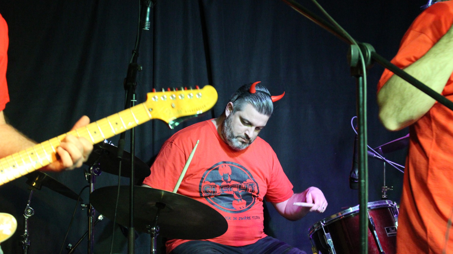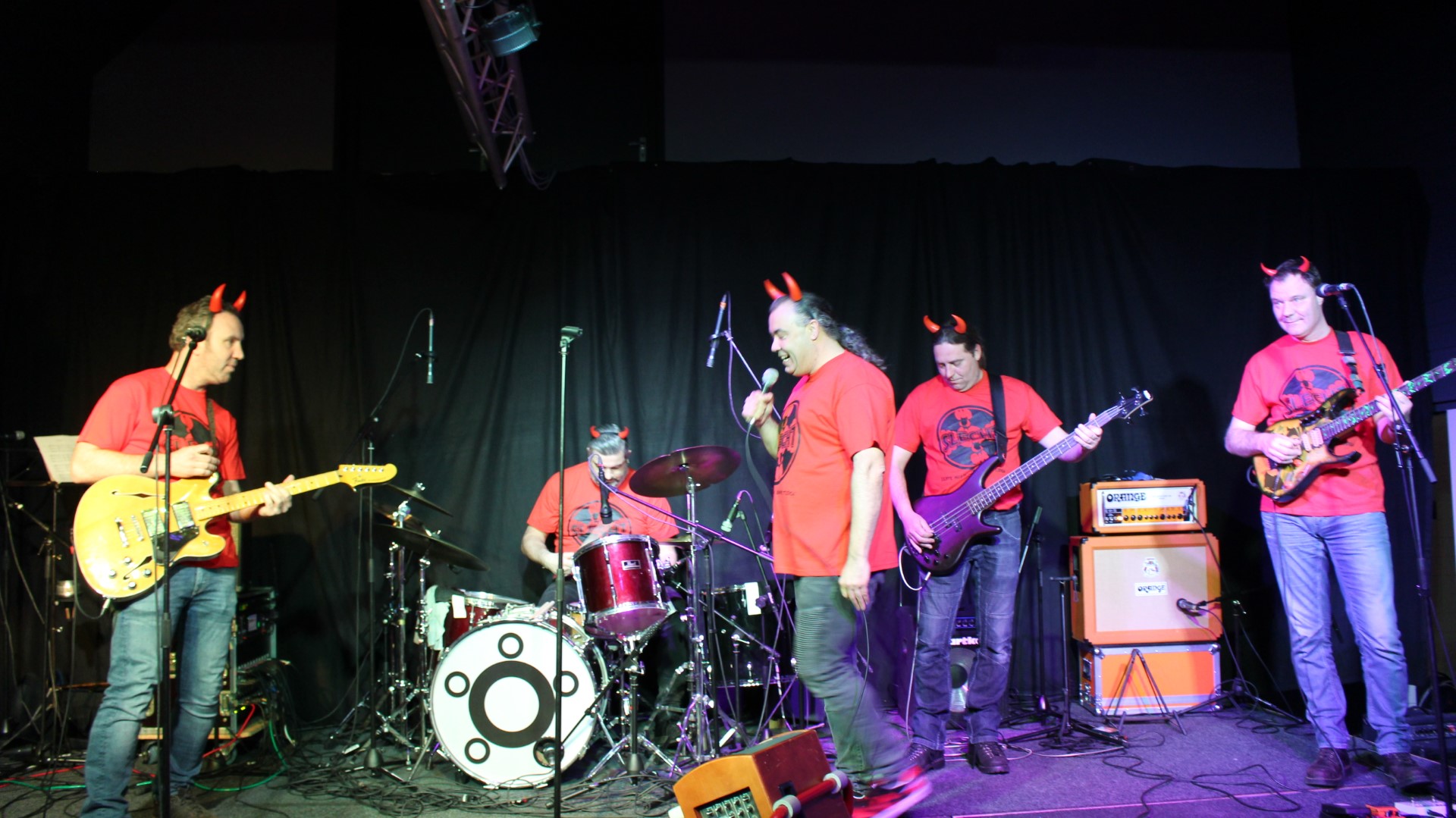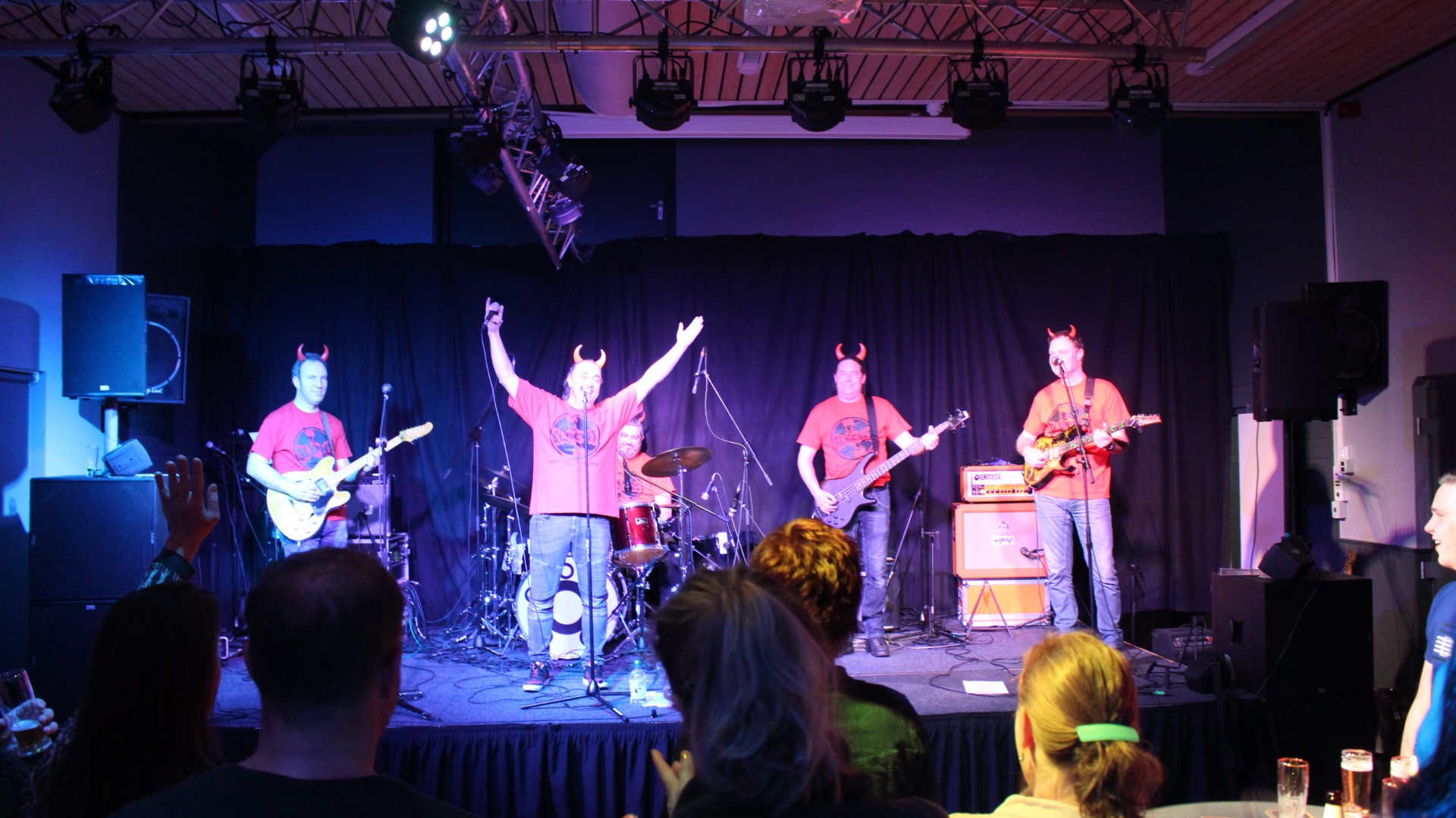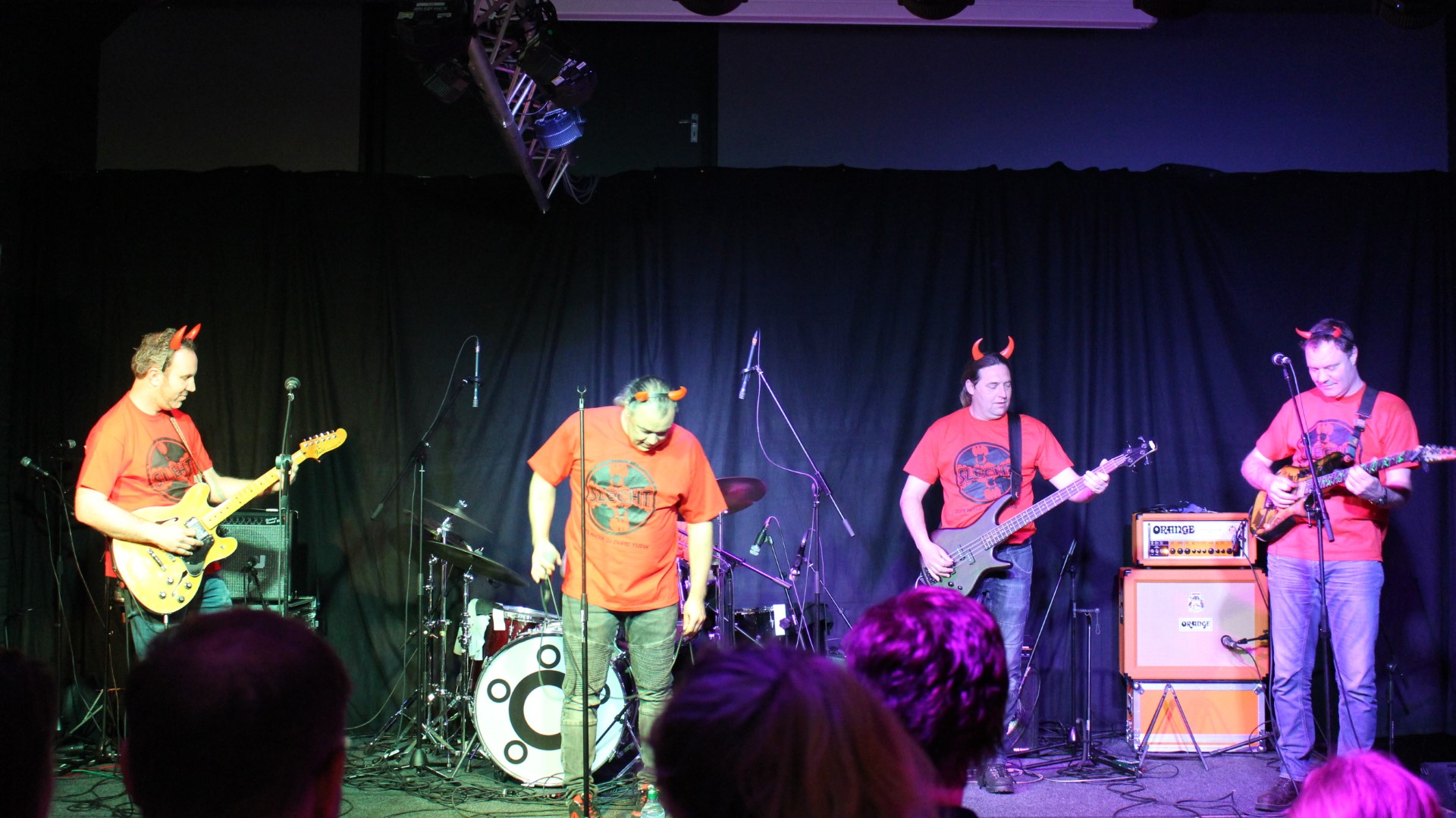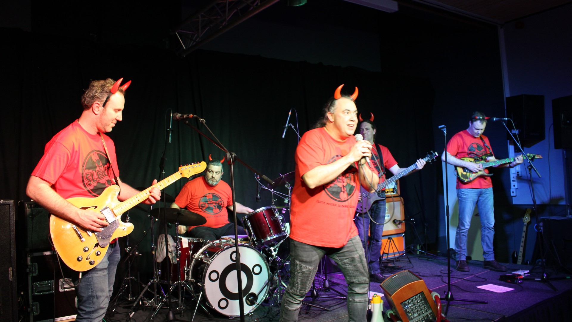 Rond 22:00 uur brak de hel los en bracht SLECHT nummers als “Hanekam” en “Flink van Bill” vol passie! Gradje Peters, Martijn Verharen, Jeroen van Halst, Paul en Sander van den Boogaard speelden fantastisch! Natuurlijk ontbraken ook de hoorntjes niet!