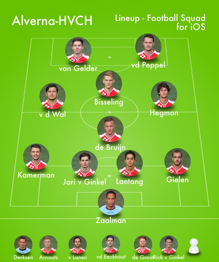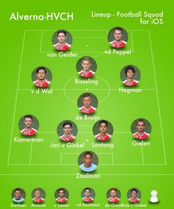 Opstelling Alverna: Robert Zaalman: Job Gielen, Jari van Ginkel, Mels Lantang, Tjalling Kamerman(’83 Arthur vd Eeckhout): Mats Hegman, Derek de Bruijn, Cas vd Wal: Sven van Gelder, Sander Bisseling(’55 Levi Raja Boean), Lennart van de Peppel.