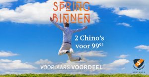 Profiteer tijdens de Spring Binnen-weken van ongekend veel voorjaarsvoordeel! Je ruikt het, je voelt het en je merkt het aan alles om je heen: er staat een nieuw seizoen voor de deur. Ook bij Suitable Herenmode heeft men de smaak flink te pakken. Kom een kijkje nemen in de shop in Nijmegen aan de Molenstraat 39 en shop jouw voorjaarsgarderobe bij elkaar met ongelofelijk veel actiekorting. www.suitableshop.nl/suitable-nijmegen