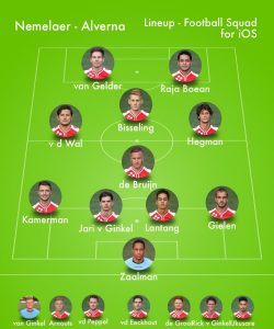 Opstelling Alverna: Robert Zaalman: Job Gielen (’70 Martijn de Groot), Jari van Ginkel, Mels Lantang, Tjalling Kamerman: Mats Hegman (87 Max Ukusare), Derek de Bruijn. Cas vd Wal, Sander Bisseling: Sven van Gelder (’82 Arthur vd Eeckhout), Levi Raja Boean