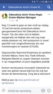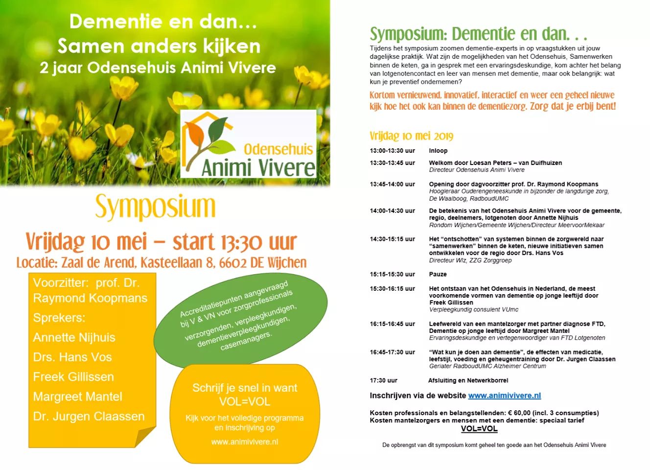 Het Odensehuis Animi Vivere is een inloophuis voor mensen met geheugenverlies of beginnende dementie en hun naaste(n), specifiek ook voor jonge mensen. Op vrijdagmiddag 10 mei wordt er een symposium gehouden.