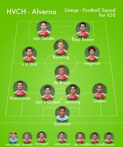 Opstelling Alverna: Robert Zaalman: Job Gielen, Jari van Ginkel, Mels Lantang, Tjalling Kamerman: Mats Hegman (’82 Jens Arnouts), Derek de Bruijn (’71 Rick van Ginkel). Cas vd Wal, Sander Bisseling: Sven van Gelder, Levi Raja Boean.