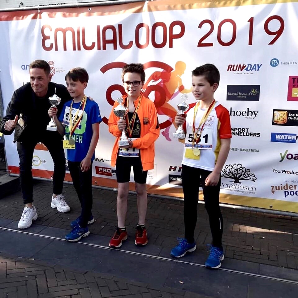 Als er maar liefst 430 lopers aan de start staan in het centrum van Wijchen tijdens een eerste organisatie van De Emilialoop van AVWijchen, dan kan je wel van een succes spreken! De hoofdwedstrijd werd gewonnen door Tomasz Kucharczyk uit Volkel, met een gemiddelde snelheid van 16,26 km/u liep hij de 10 km in 36,53 minuten. Het hardloopevenement werd op zaterdag 11 mei geopend door wethouder Paul Loermans, Wijchens beste loper Jesper van der Wielen deed de prijsuitreiking en iedereen genoot tevens van de 4 prachtige wedstrijden in toch nog een lekker zonnetje! Wat wil je nog meer?! U ziet hier de winnaars van de kidsrun en kijk snel op