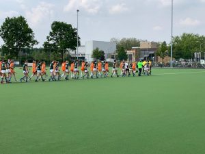 Met nog zes minuten te spelen besloot coach Meta Bouwmans om vol voor de winst te gaan en wisselde de keepster in voor een veldspeelster. Wijchen speelde vanaf dat moment met volle druk en natuurlijk met risico. De ploeg wist kansen te creëren maar kwam niet tot scoren. In de voorlaatste minuut was het Uden dat uit een counter een strafcorner wist te halen. Zonder keepster was die moeilijk te verdedigen maar de Wijchense ploeg deed dit in de basis erg goed. Toch kwam de bal voor de stick van een Udense speelster, die uithaalde en de bal met wat geluk binnenschoot: 1-2. Wijchen kreeg uiteindelijk nog een strafcorner in de laatste minuut, maar wist deze helaas niet te verzilveren. Door dit verlies is het gat tussen de ploegen opgelopen tot vijf punten en is er slechts nog een theoretische kans om de tweede plaats te veroveren en daarmee promotie af te dwingen naar de eerste klasse.