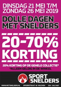 Van dinsdag 21 t/m zondag 26 mei zijn het Dolle Dagen met Snelders. Met kortingen tot wel 70%!