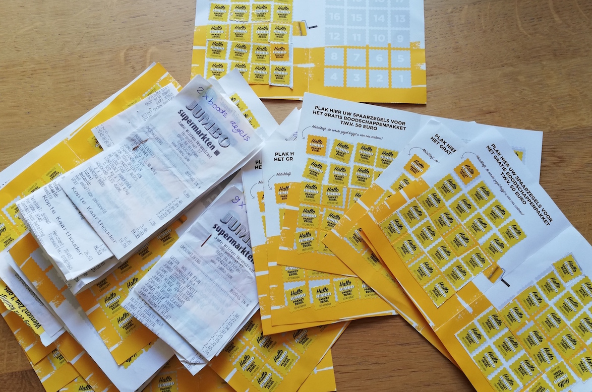 sympathieke zegelactie voor een boodschappenpakket, een actie die al jaren door de Wijchense Iris Stevens wordt georganiseerd. Dit jaar voor het eerst (na de supermarktwissel met Emté) via Jumbo Van Kuppeveld aan de Herenstraat 17 in Wijchen.