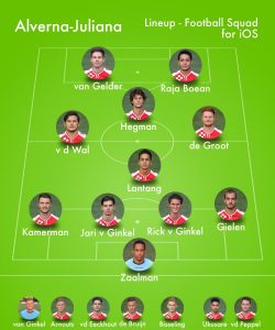 Opstelling Alverna: Robert Zaalman: Job Gielen, Jari van Ginkel. Rick van Ginkel (’68 Jens Arnouts). Tjalling Kamerman: Martijn de Groot (’49 Derek de Bruijn) Mats Hegman. Cas vd Wal, Mels Lantang: Sven van Gelder (’78 Arthur vd Eeckhout), Levi Raja Boean.