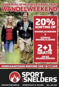 Loop je donderdag ook de Kastelentocht door Wijchen en de omliggende dorpen of ben je aan het trainen voor de Vierdaagse, wandel dan bij Sport met Snelders binnen voor de wandelacties! Kortingen op de wandelschoenen, wandelkleding en de wandelsokken; kortom: dit mag je niet missen!