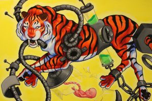 Nova: "Ik heb voor deze titel gekozen omdat Fantastic beasts op dit moment nog overal ter wereld te vinden zijn. Maar de wonderen van de natuur verminderen sterk door menselijke invloeden. Ik heb geprobeerd dit uit te beelden in mijn werk omdat ik het belangrijk vind dat we een deel van de oorspronkelijke aarde beschermen en niet straks als enige diersoort overblijven. Materiaal dat ik hierbij gebruikte was acrylverf en Posca-stiften op doek."