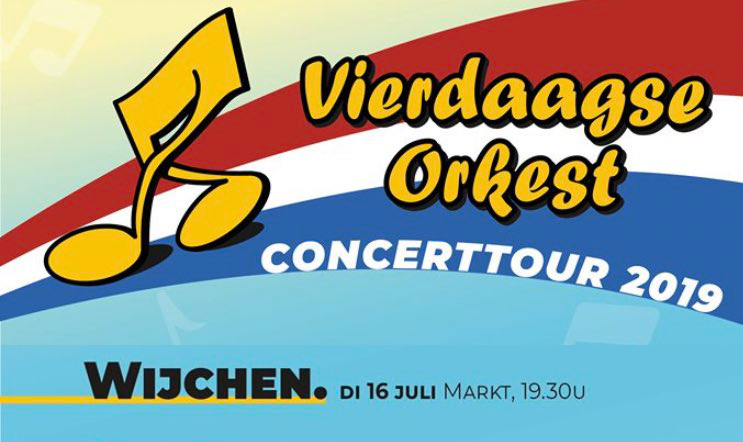 Het Vierdaagse Orkest speelt op dinsdag 16 juli in Wijchen. Het orkest speelt dit jaar met meer muzikanten dan ooit. Het programma belooft een waar muziekspektakel. Het concert op de Markt begint om 19.30 uur, de toegang is gratis.