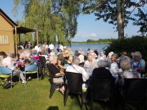 De Oldtimertoer vervolgde naar het buitengebied van Alverna. Daar hebben de deelnemers kunnen genieten van het prachtige uitzicht en de rust die er over het Wijchens Ven heerst. Er werd een lichte maaltijd verzorgd en het glas geheven op een hele mooie dag met mooie ontmoetingen en gesprekken. Alle deelnemers kregen als aandenken een boekje over de wederopbouw van Wijchen van de gemeente Wijchen. De dankbaarheid bij de deelnemers aan het einde van deze dag was groot.