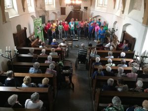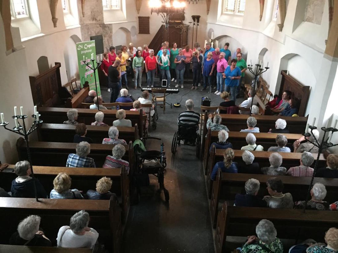 De route werd vervolgd naar Bergharen, Hernen en Leur. In Leur werd een bezoek gebracht aan het pittoreske kerkje, waar de deelnemers op een geweldig optreden van popkoor Di Capelli werden getrakteerd. Het koor gaf een fantastisch passievol en kleurrijk optreden met muziek uit de tijd dat de deelnemers nog jonger waren. Het welverdiende applaus volgde. Daarna werd er een drankje aangeboden bij het Ontmoetingscentrum van Leur.