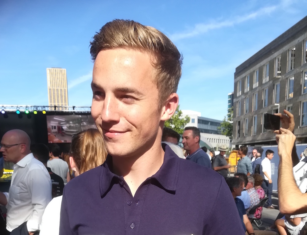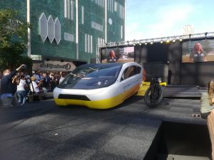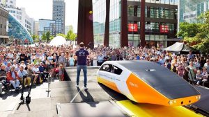 Thomas de Jong, 22 jarige student TU Eindhoven en afkomstig uit Wijchen, heeft op donderdag 4 juli in Eindhoven de zonneauto "Stella Era" gepresenteerd.
