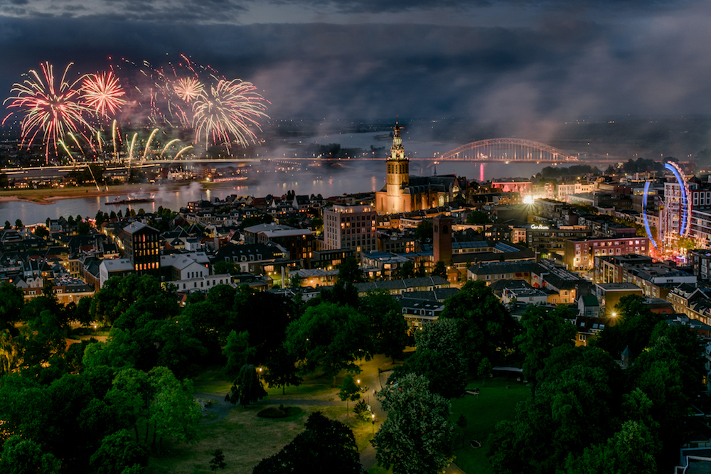 Vuurwerkshow ‘Waal in Vlammen’ op de zondagavond van Vierdaagsefeesten is traditioneel voor velen één van de hoogtepunten van het jaar. Het was gisteren dan ook ontzettend druk op de Waalkade. Maar niet alleen daar: velen genoten ook van de optredens van Davina Michelle op Plein ’44, Maan in de Molenstraat, Tino Martin op het Faberplein of het 25ste Gevelconcert op de Grote Markt.