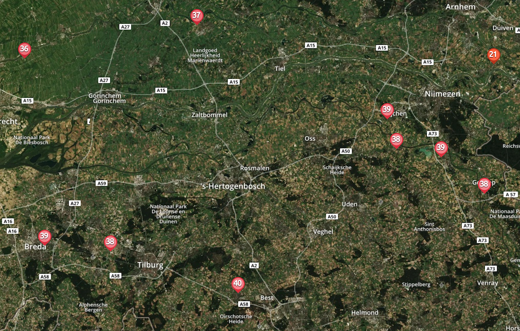 euweather.eu zien. Het warmste deel van Nederland is momenteel het zuiden van Brabant, met uitschieters als 39,8 in Oirschot, volgens de website.