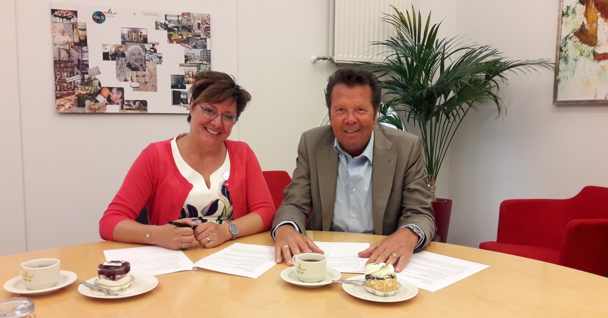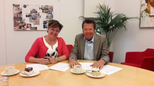 Met een feestelijk tintje ondertekenden wethouder T. Burgers en bestuurder van LuciVer T. Froidbise op 30 juli jl. de raamovereenkomst Hulp bij het Huishouden, waarmee de organisaties de bestaande samenwerking voortzetten.