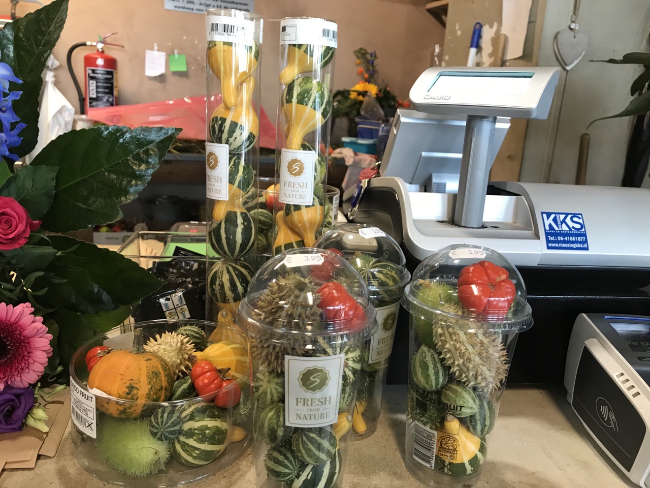 Heeft u de mooie buitenproducten als kalebassen, de heide, de prachtige bolchrysanten, de hebe en het appeltje der liefde al gezien op Zuiderpoort? Ze staan er echt prachtig bij.