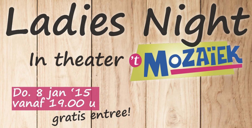 Of… te krijgen! Want in de aanloop van deze Ladies Night kunnen twee vriendinnen een complete make-over winnen. Deze make-over bevat: hairstyling, make-up sessie, nagelstyling, Ladies Night outfit met korting, accessories en een fotosessie. Het enige dat de dames hiervoor hoeven te doen is de Facebookpagina van Theater ’t Mozaïek