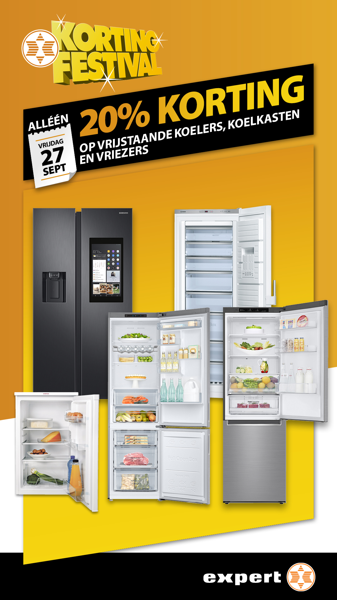 Ook vrijdag 27 september is het feest bij Expert in de Touwslagersbaan: 20% korting op vrijstaande koelers, koelkasten en vrieskisten! Daarvan wilt u toch zeker ook profiteren?! En bekijk ook alvast de kortingen van de komende dagen hieronder! Volg Expert Wijchen ook op Facebook. Touwslagersbaan 32, Wijchen, 024-645 3080.