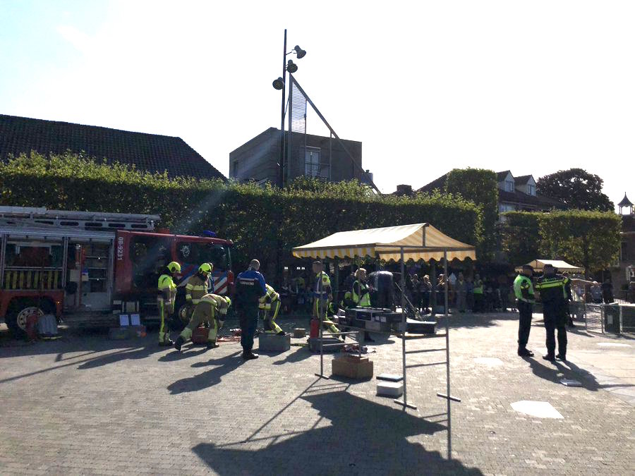 brandweeroefening op de Markt in Wijchen. Burgemeester Verheijen twitterde enthousiast hierover: "Ee