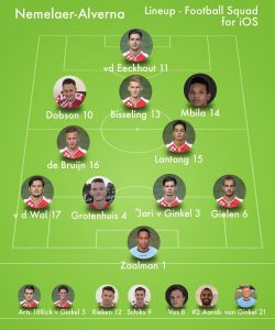 Opstelling: Robert Zaalman; Job Gielen (’10 Yassine Aarab), Jari van Ginkel, Jurre Grotenhuis, Cas van de Wal; Mels Lanting (’76 Dennis Arts), Derek de Bruijn; Owen Mbila, Sander Bisseling, Johnny Dobson