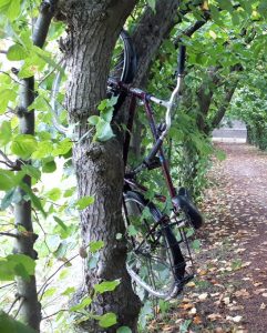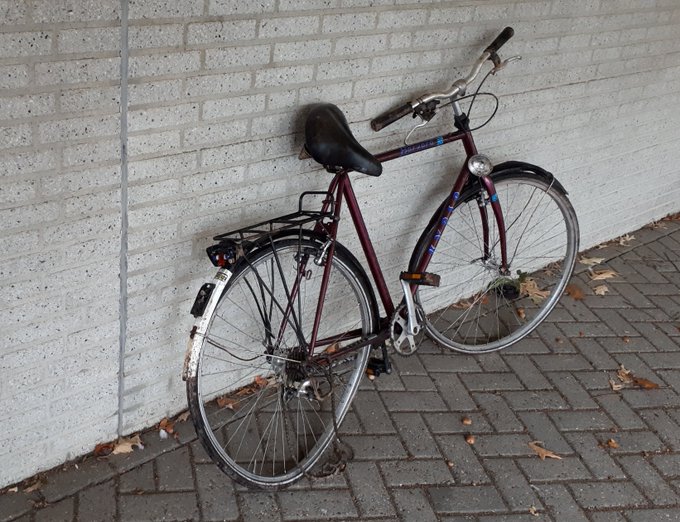 Wijkagent Henry van Galen roept uw hulp in via Twitter: "Een wijkbewoonster stuurde mij vanmorgen foto's van het mooie Laantje in Wijchen. Wat blijkt .. er hangt een totaal vernielde fiets in de boom. Vermoedelijk het resultaat van een ¨gezellig¨ avondje uit... Iets gezien of gehoord, bel 0900-8844."