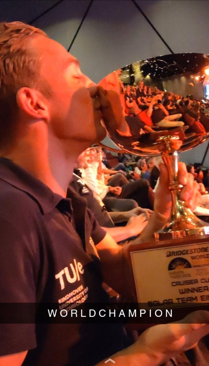 Thomas de Jong, uit Wijchen, en zijn team zijn wereldkampioen geworden! Ze scoorden 111,7 punten op efficiëntie en 93.1 punten voor het comfort en de innovaties, resulterend in de eerste plek. 'Stella Era' gemaakt op de TU in Eindhoven is nu officieel de winnaar van de Cruiser Class! Twee prijzen mee naar Nederland, hoe gaaf is dat!