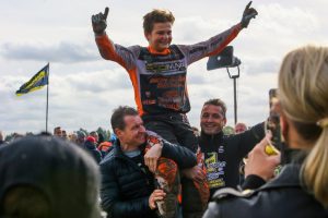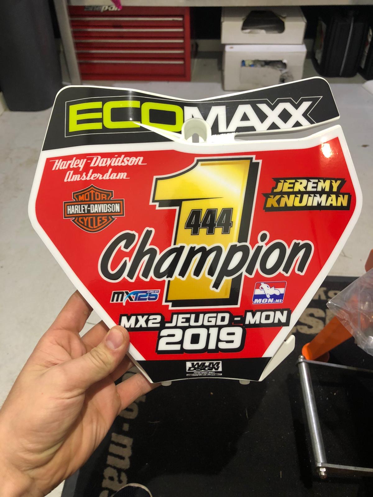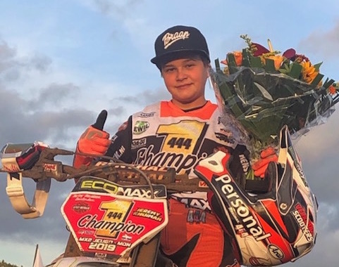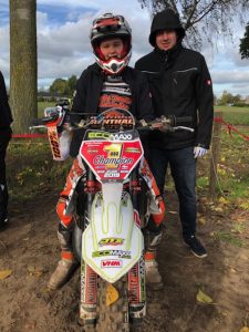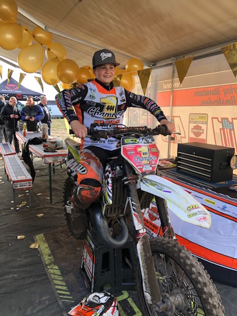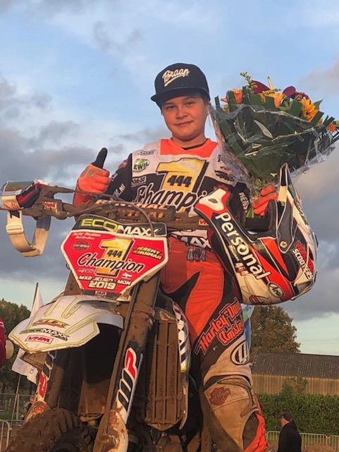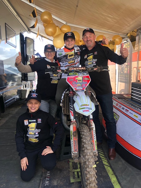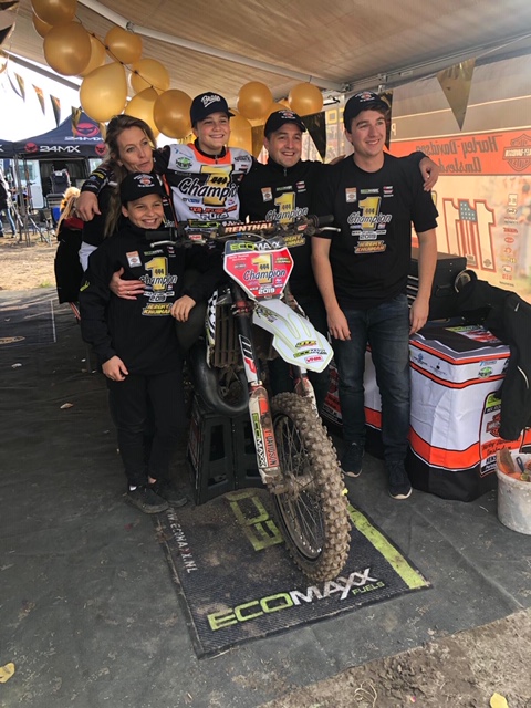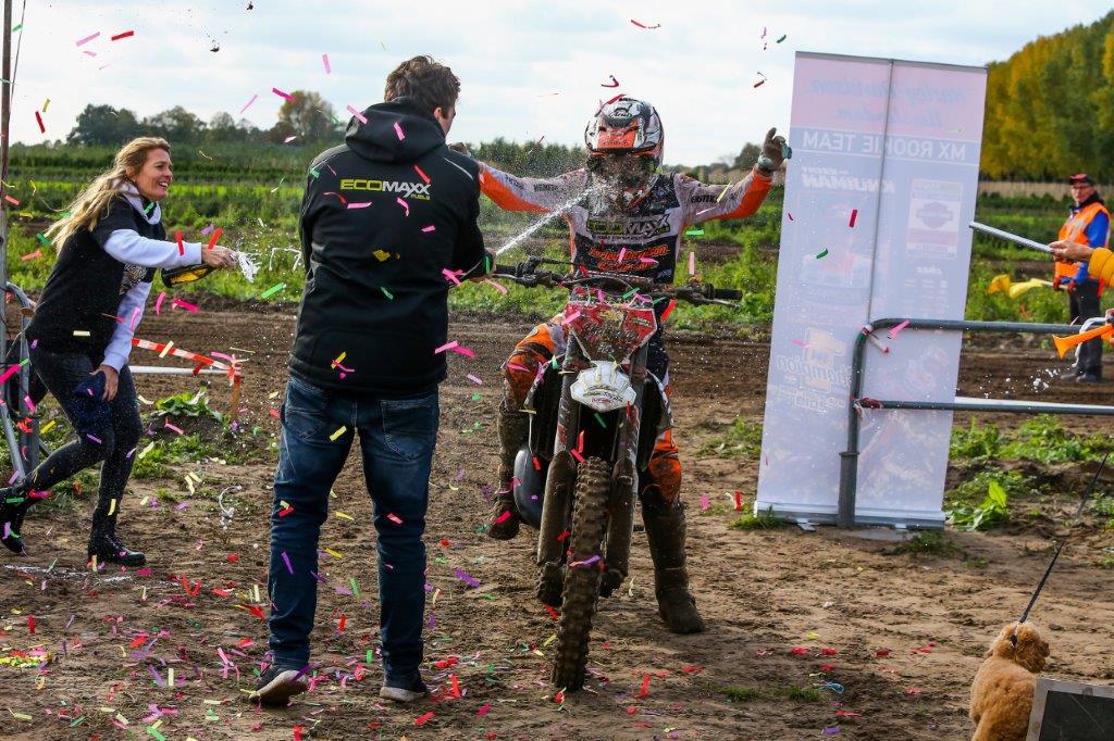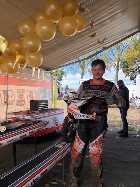 Hiermee stelde hij de titel in de MX2 Jeugdklasse veilig en werd er samen met een aantal sponsoren en supporters een mooi feestje gevierd! Dit was zijn laatste wedstrijd op de 125cc en hij bedankt Ecomaxx voor het beschikbaar stellen van de motor voor deze wedstrijd.