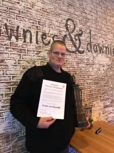 En zo is het! Het Urnekabinet heeft een goede keuze gemaakt. Frank is er happy mee: “Ik vind het mooi dat ik als Wijchense Goedzak gewaardeerd wordt op deze manier. Ik ben er zéér blij mee!” Proficiat Frank!