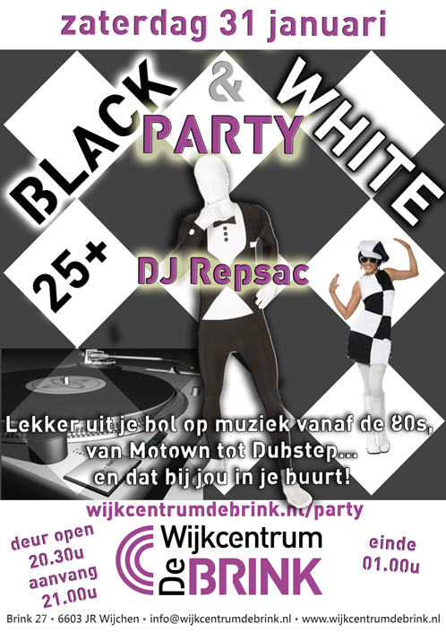 25+ Black & White party met DJ Repsac. Dansen op je favoriete 80's maar ook de nieuwste hits uit 2015: party-music.