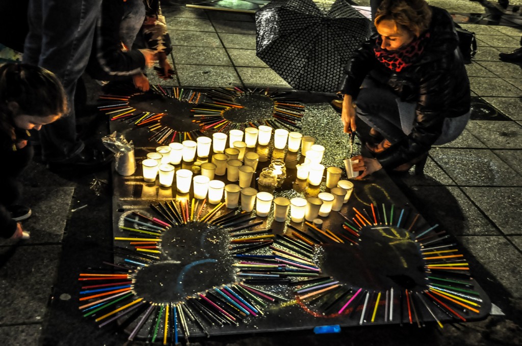 Met een hart van liefde gemaakt met potloden herdenken we de tragedie in Parijs.