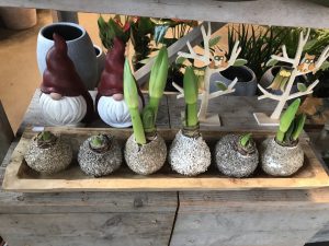 Natuurlijk zijn de kleuren rood, wit en groen de traditionele kleuren tijdens Kerst. Nieuw dit jaar is de amaryllis die, gewaxt, nu voorzien is van zaden en pitjes! Naast de bollen zijn er natuurlijk ook de snijbloemen van de amaryllis. Superleuk! En wat te denken van de kerststukken voorzien van orichideeën, de Ilex-takken en de bolbloemen. Leuk is dat kort voor Kerst ook verse bloemen als rozen bewerkt worden met glitter en/of sneeuw. Hoe dan ook: het wordt weer een prachtig kerstfeest met De Blauwe Steen!