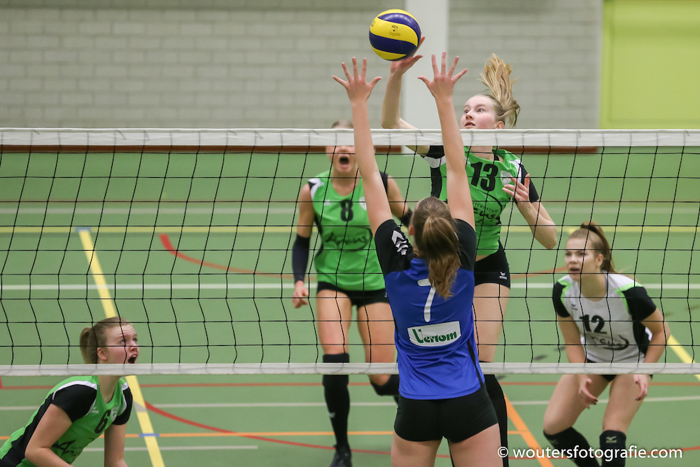 e service van Korinda Kant ging in het net 12-13. Trivos speelde de bal 4 maal