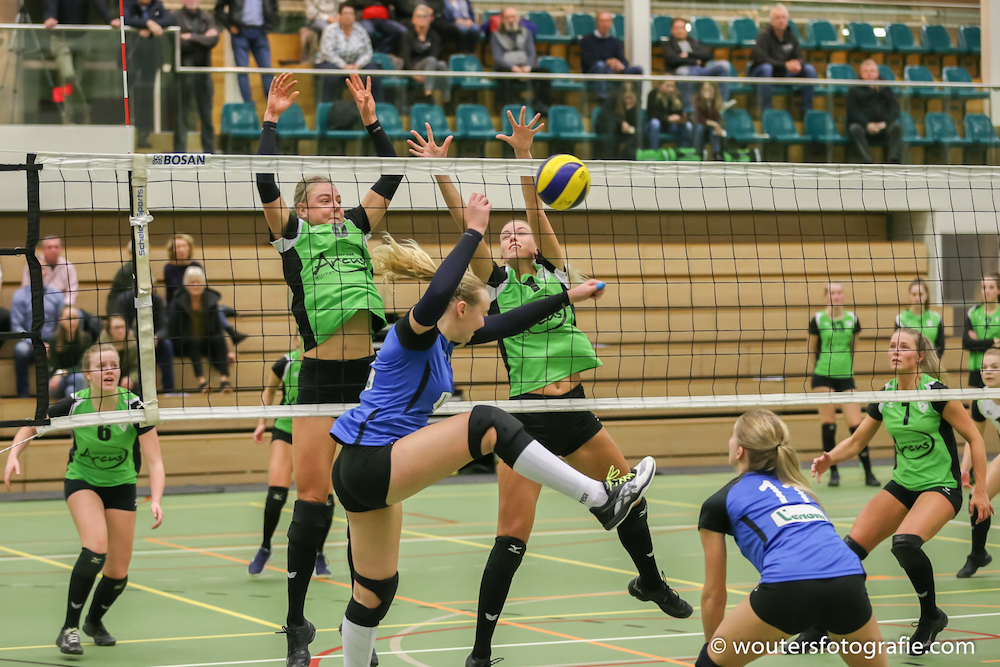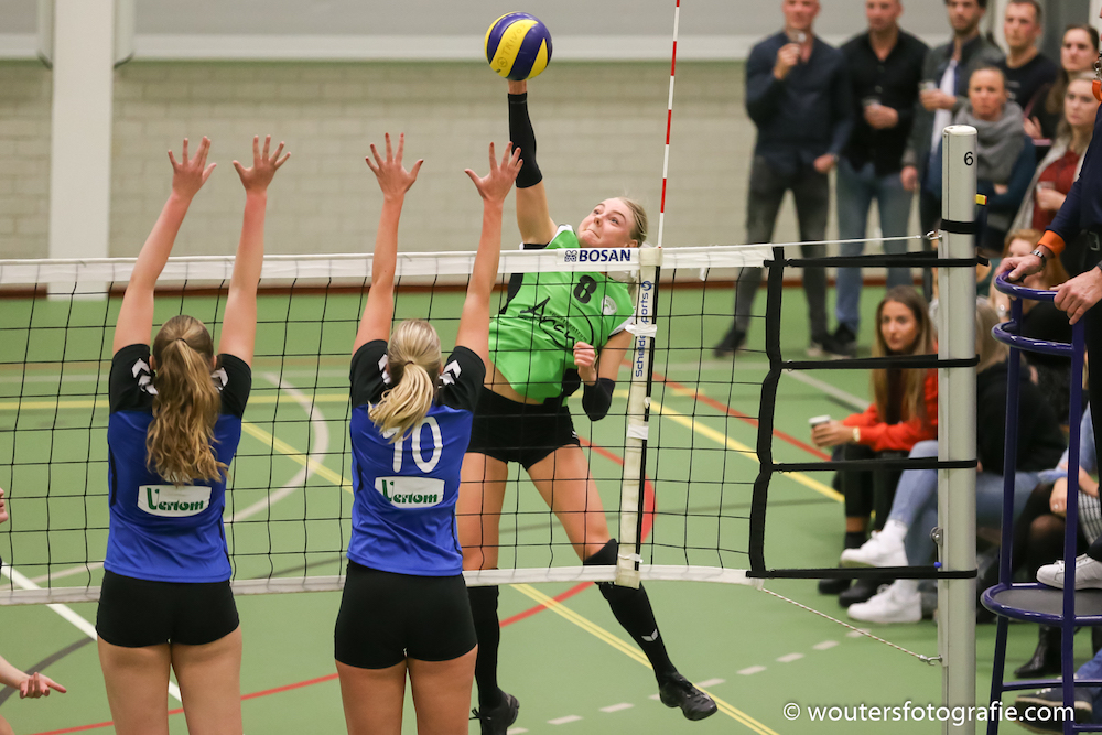 e set was het begin niet goed. Veel persoonlijke fouten werden gemaakt en een snelle 2-7 achterstand was een feit. Anne Veenstra kon het tij nog even keren met een mooie aanval langs de lijn en een bekeken tipbal, maar toch was het Spivo die wederom wist te scoren 4-8. Wisseling van speelhelft. Door de te lage setup sloeg Manon Ottjes in het Spivoblok en kwam de bal hard terug. Timeout Trivos. De volgende aanval ging prima na een mooie setup van Vera de Weerdt, waaruit Manon Ottjes deze keer wel scoorde. De aanval van Spivo ging uit het veld en Trivos kreeg weer een beetje geloof in eigen kunnen. Een vreemde kluts situatie bij Trivos gebeurde en de bal viel pardoes op de grond. Michelle Koolen scoorde via het Spivoblok 7-10 maar een soortgelijke bal kreeg Trivos ook tegen 7-11. Michelle Koolen scoorde via het blok en na de service van Vera de Weerdt ontstond een lange rally met over en weer mooie aanvallen. Uiteindelijk wist Manon Ottjes de bal met een mooi lobje over het blok te plaatsen 9-11.