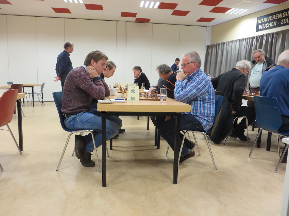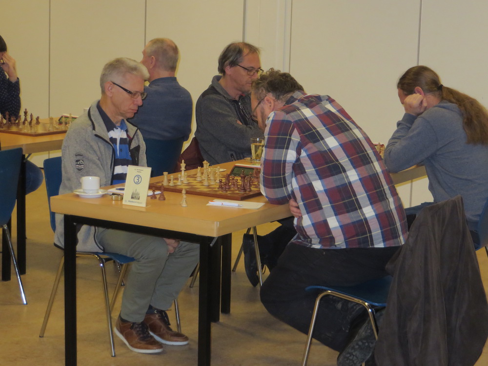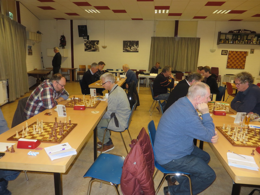 Schaakclub Het Kasteel nadert de top van de ranglijst van de vierde klasse na een krappe overwinning in de schaakderby tegen OSV uit Oss. Het was een bijzondere wedstrijd, omdat twee leden van Het Kasteel, John Klein Douwel en Sjaak Laurant, in de externe competitie voor OSV uitkomen en nu hun eigen vereniging moesten bestrijden. Dat ging overigens vreedzaam, want beide heren besloten het punt te delen met respectievelijk Kaz Haans en Siebe Rossen.