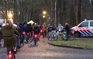 Wijkagent Henry van Galen meldt via Twitter: "Succesvolle verlichtingscontrole bij Maaswaal College, locatie Veenseweg in Wijchen. Naar schatting 98 procent had de verlichting prima in orde!"