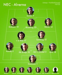 Een overwinning waar niet veel op af valt te dingen, maar ook anders had kunnen zijn, omdat de kansenverhouding wel in Alverna’s voordeel was. Ook werd het plan om bij standaardsituaties gevaar te stichten middels hoge ballen - bij de ‘kleine’ NEC-ploeg - zelf om zeep geholpen door deze ballen slecht te nemen. Verder was het geen voordeel dat Jurre Grotenhuis er met blessure af moest in de warming-up, waardoor Derek de Bruijn centraal kwam te spelen, wat hem overigens prima afging.